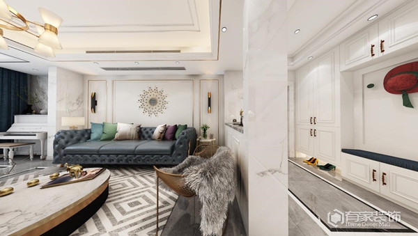 我是一名畢業(yè)于國(guó)外院校的金融系工作從業(yè)者,在中國(guó)的這個(gè)家我的裝修想法是希望它保留了歐洲輕奢風(fēng)格,同時(shí)給家添加了個(gè)性化的元素。以白灰為主的基本配色加入了金屬元素來體現(xiàn)輕